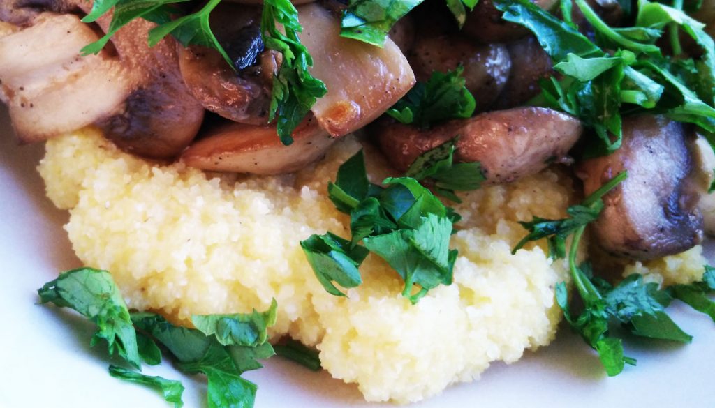 - Mămăliga se va servi împreună cu ciupercile. Sugestia de prezentare ar fi ca ciupercile să fie puse în centrul farfuriei, peste mămăligă, într-o zonă tasată cu lingura.